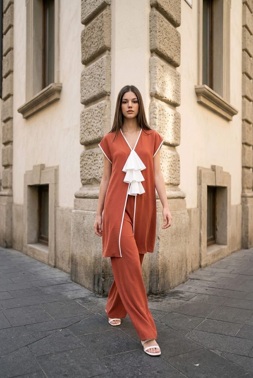 Conjunto de dos piezas con diseño fluido y atrevido. Elegante y moderno, perfecto para un look cómodo.