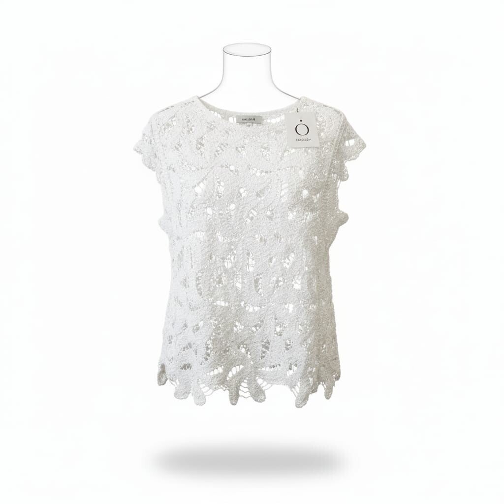 Camisa de crochet en tono blanco natural. Sofisticada y femenina.